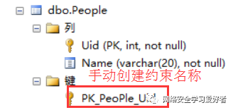 执行后,添加数据表主键,主键约束名对应下图(手动创建约束名称)