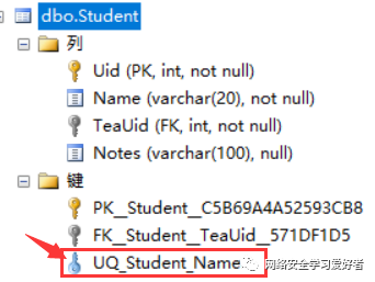 比如可以这样命名,主键约束:PK_Student_Uid, 检查约束:CK_Student_Age 等