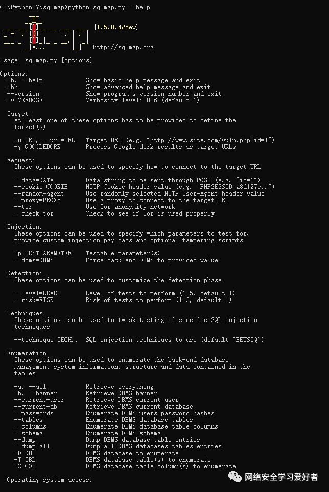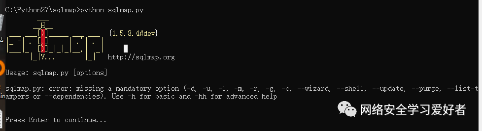 输入python sqlmap.py 出现下面这个界面代表安装成功了