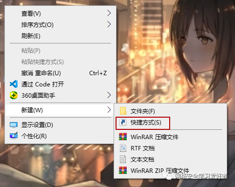 桌面右击新建快捷方式