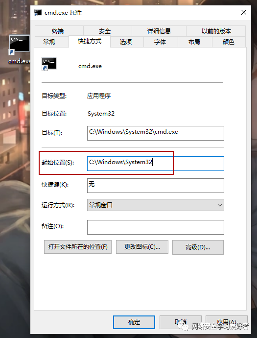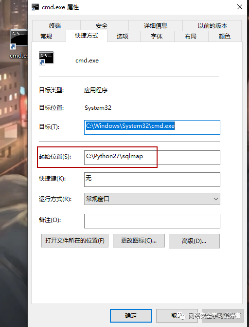 点击确定 然后将图标重命名为sqlmap.exe