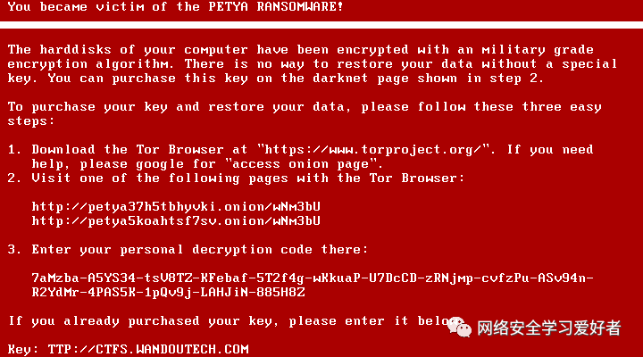 2016年3月,网络上出现了一种名为“Petya”的变体勒索软件,它的破坏性比传统的勒索软件更大。