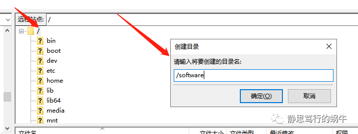 1)在FileZilla右边的远程服务器目录根目录右键创建software目录