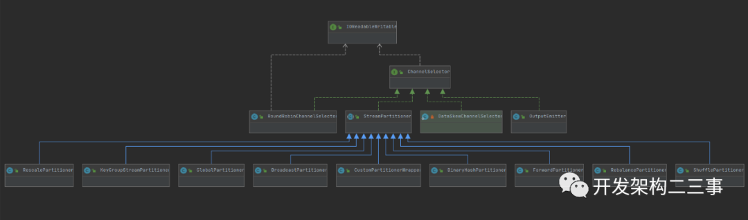 我们根据partitioner的分类来进行分析,主要分为四种大类型,即RoundRobinChannelSelector、StreamPartitioner、DataSkewChannelSelector、OutputEmitter四种,接下来我们一一分析。