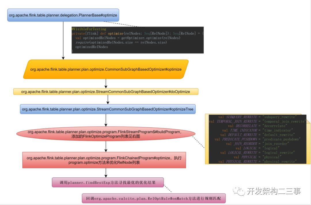 本篇主要梳理sql执行的流程中涉及到的各个步骤,针对内部调用apache calcite的api进行flink sql的优化及使用javacc 进行代码生成的部分在后续的篇幅中会逐一进行分析。