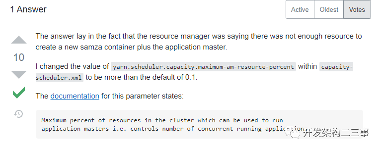没错,问题就出来not starting application as amIfStarted exceeds amLimit,那么这个是什么原因引起的呢,我们看下stackoverflow[1]上的解释: