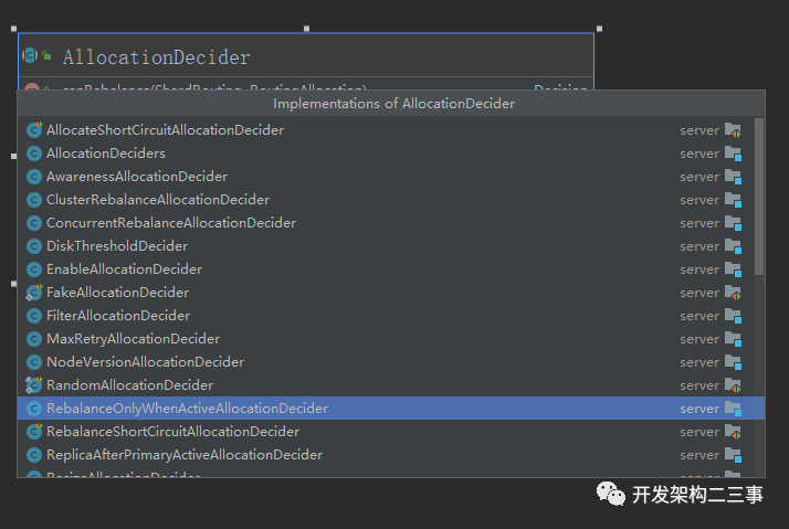 上面的图为类继承关系图的一部分,下面针对具体的配置进行分析。本文及本系列源码都是针对es的7.5.1版本。Shard Allocation,Shard Move,Shard Rebalance会利用这些Decider,再决定是否进行分片分配,分片迁移,分片均衡等操作。