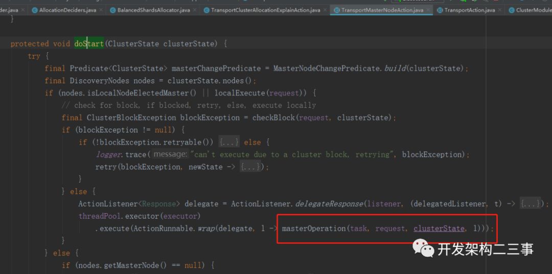org.elasticsearch.action.support.master.TransportMasterNodeAction#doExecute: