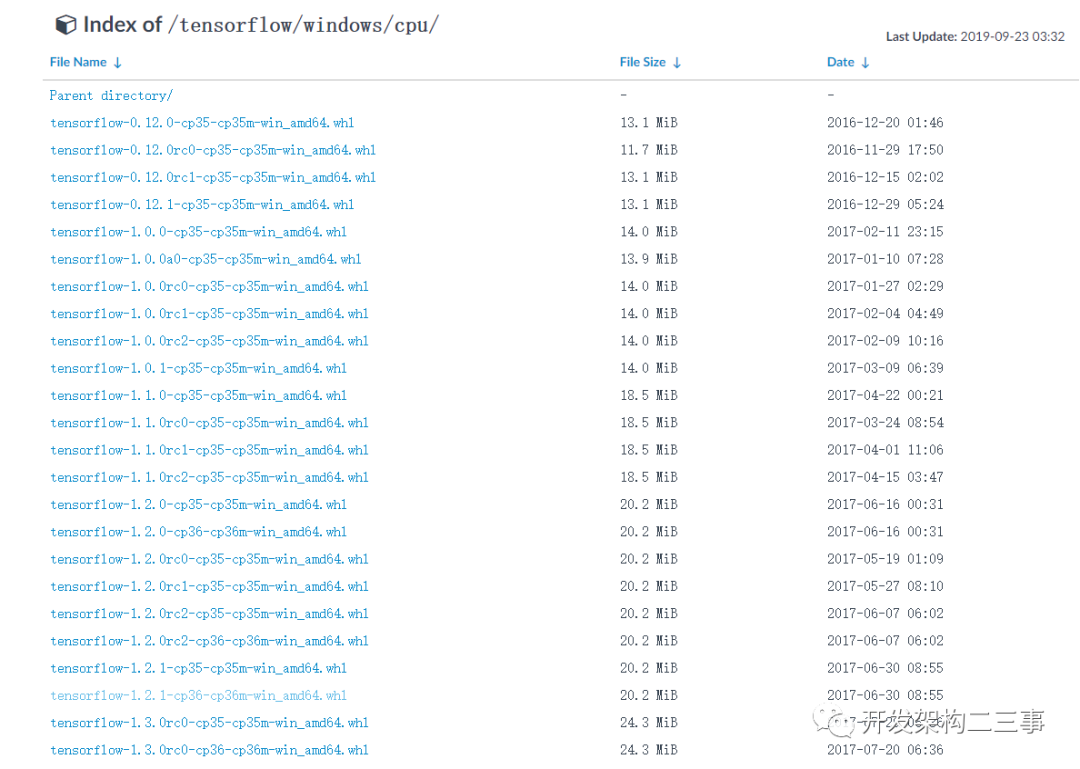 接下来安装tensorflow版本,可以选择cpu版本或gpu版本,下载地址为: