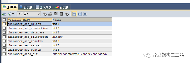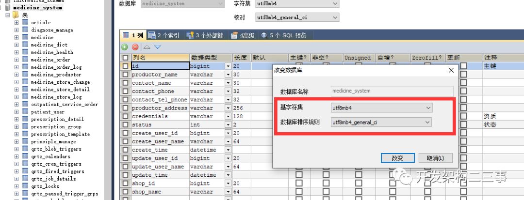 将表字符集都改成utf8,运行起来还是报错。可以在客户端工具上直接修改,也可以使用以下语句修改: