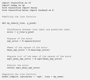 model.compile(loss = mean_squared_error,optimizer=’sgd’)