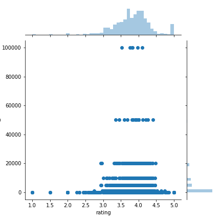 sns.jointplot(x =“ rating”,y =“ units_sold”,data = df,kind =“ scatter”)