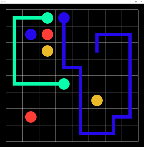 如今的深度学习问题大部分可以归结为要使用哪种算法。我以A*搜索作为开始。尽管它本身不是深度学习,但是它也很好的说明了这个问题内部的复杂性,并且也给了我们一些机会,来使用更高级的、能够自我驱动的启发式算法。由于空间的复杂性太大,以至于我无法一次性解决问题。所以我开始按颜色递归地解决问题(如果给定路径被“堵塞”,就回溯到上一种颜色)。在启发式算法中,我使用了较为可信的曼哈顿距离。我在四种尺寸的板子上测试了我的算法:微型(2✖4)、小型(5✖5)、中型(8✖8)、大型(14✖14)。我保证了大型和中型的板子上的颜色比一般的颜色要少。因为大、中型的板子的确会使问题更难,对人和计算机都是如此(更多可能的路径/选择/状态)。这个算法在小型板子上运行的很好,但是花了相当多的时间。因此,我为下一个状态的函数增加了一些规则,以此希望强化学习的算法能够自己找出这些规则:防止同色相邻方格不连接,或者出现空“港湾”。