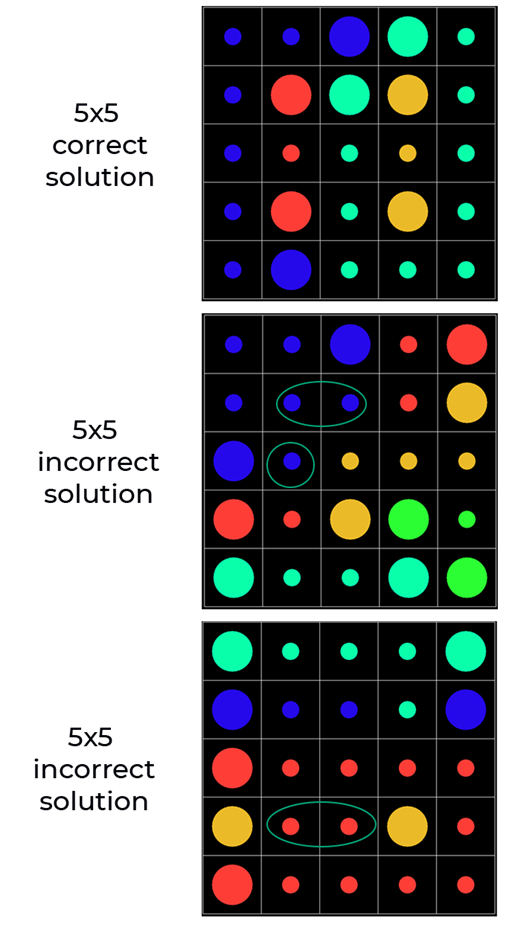 这就产生了几千个用来研究的数据点,但这仍然不是很多。但后来我意识到,就CNN而言,颜色的确切值并不重要,重要的是颜色是不同的。所以我们可以将颜色重新排列,并且仍然有另一个非冗余的数据点。即使对一个只有六种颜色的5x5的板来说,这可以给我们的CNN提供多达6!= 720倍的研究数据点(当然,等大的板和更多的颜色会有更多可选的组合)。