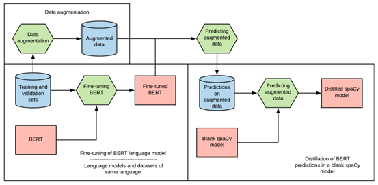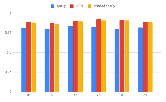 https://towardsdatascience.com/distilling-bert-models-with-spacy-277c7edc426c
