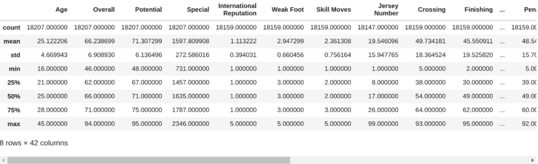 一个用锈铁制造的汽车不能正常驾驶,甚至在最糟糕的情况下,根本不能驾驶…没有人愿意使用或购买一辆生锈的汽车。所以,数据集对于你的项目至关重要。项目在技术和经济层面上的成功取决于你所选择数据的质量。在机器学习项目中,跳过数据评估步骤可能会浪费大量时间,你将不得不从头开始项目。所以现在看来,数据科学家们花那么多时间调查和准备数据集是合乎逻辑的!为了确保我们的数据集是有用的,一个好的实践操作是EDA,即探索性数据分析。EDA是一种熟悉数据集的方法。通过这个反思性工作,可以保证处理的是有趣,连贯和干净的数据。这一步是可视化的而且是基于摘要统计和图形表达。通过EDA,数据科学家可以发现哪一个特征重要或者特征之间的相关性。此外,EDA可以让你发现错误或者缺失值,检测异常值或者驳回一个假设。特征变量的选择之后会被用于机器学习。一般来说,在探索性数据分析之后的步骤是特征工程/数据增强,在这一过程中,你需要把原始数据进行处理,赋予他们额外价值。对于这个例子,我使用了一个非常适合EDA的数据集,即FIFA 19完整的球员数据集。它包含多种数据类型,缺失值,并且有许多适用的指标。对这个数据集的几个完整的分析可以在这里找到。我使用JupyterLab作为IDE,因为它的灵活性和用户友好的界面。