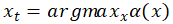 使用采集函数α(x),它是后验的一个函数,来确定下一个采样点:
