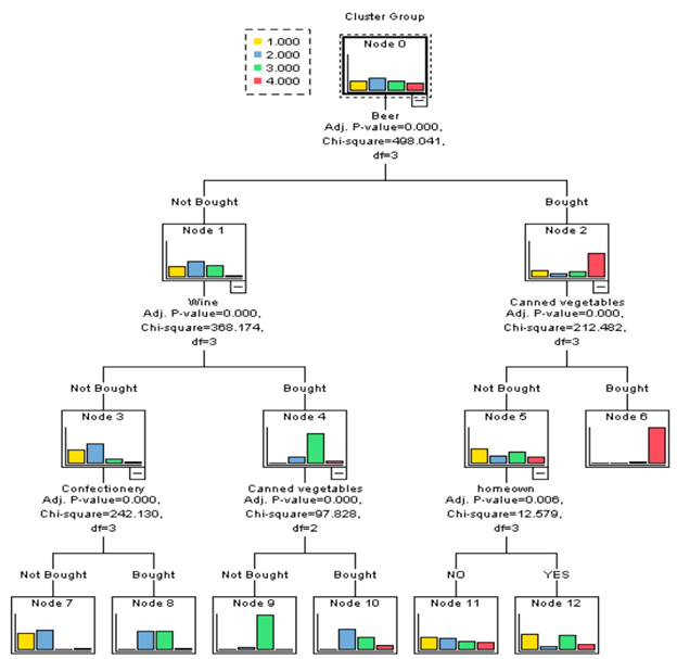 再来看看IBM较早的SPSS产品中对决策树可视化效果: