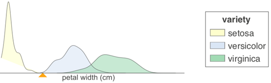 从设计的角度对这些树可视化感兴趣的人可能会发现阅读我们尝试过并拒绝的内容很有意思。在设计分类树时,相比于块状的直方图,我们预计核密度估计会给出更准确的图像。我们完成了如下的案例: