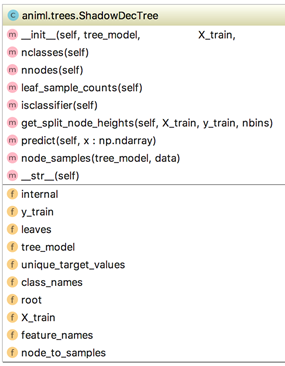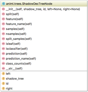 好消息是github和JupyterLab可以正确地显示图像。在Juypter notebooks中使用Image(viz.topng())的视觉效果较差;如果直接调用viz.view(),会弹出一个窗口,其中会恰当地显示结果。我们在这个项目中遇到了很多问题,编程错误、参数设置、解决bug和各种库的错误/限制以及如何更好地融合现有工具。唯一有趣的部分是可视化设计的无数次尝试。期待这个可视化会对机器学习社区有很大的帮助,这也是我们坚持不懈完成项目的动力。结合stackoverflow,文档和繁琐的图形编程,我们大概花了两个月的时间完成了这个项目。最终我们使用matplotlib生成决策和叶节点的图像,并使用传统的graphviz将它们组合成树。我们还在graphviz树的描述中广泛使用了HTML标签,以用于布局和字体规范。但我们遇到的最大麻烦是将所有组件组合成高质量的矢量图形。我们先创建了一个影子树,它包括了scikit创建的决策树,让我们开始吧。scikit-learn的分类树和回归决策树是为提高效率而构建的,树的延伸或提取节点信息并不是重点。我们创建了dtreeviz.shadow.ShadowDecTree和dtreeviz.shadow.ShadowDecTreeNode类,以便于使用所有树信息(传统的二叉树)。以下是通过scikit分类树或回归树模型创建影子树的方法:shadow_tree = ShadowDecTree(tree_model,X_train, y_train, feature_names, class_names)