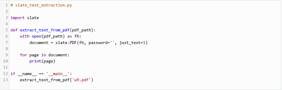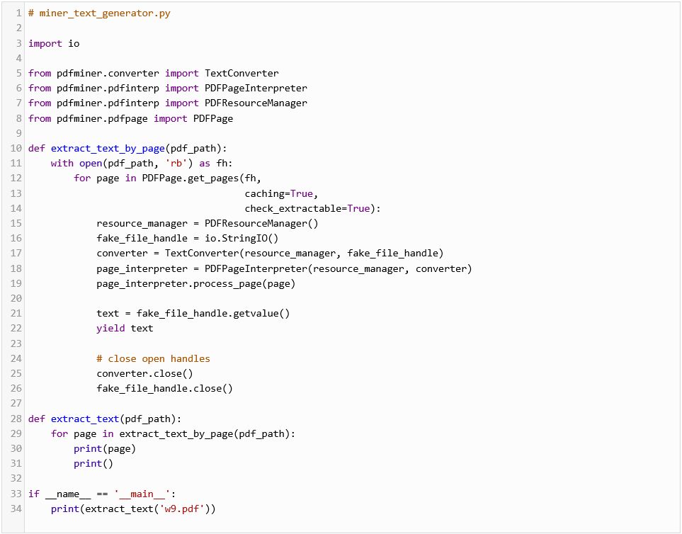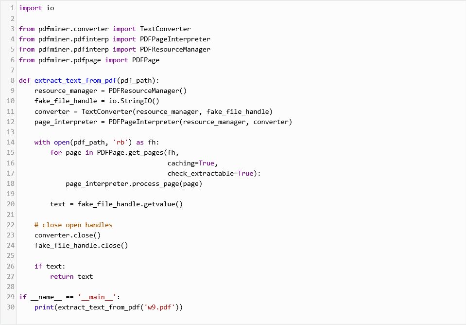现在我们已经准备好写一些代码来从PDF中提取文本了: