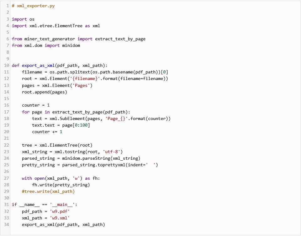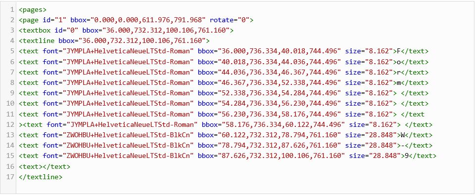 可扩展标记语言(XML)格式是最为人所熟知的输入输出格式之一。它被广泛运用于互联网中的许多不同的事物。正如我们已经在本贴中看到的,PDFMiner也支持XML作为它的输出之一。
