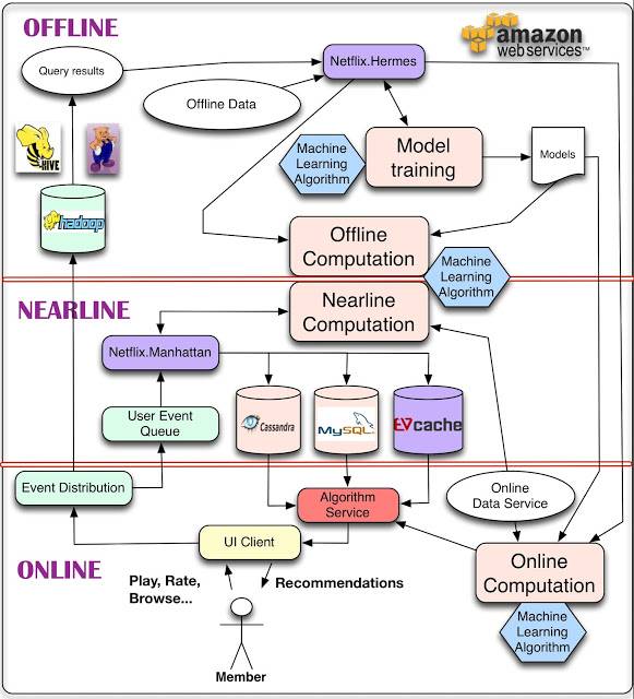 作为一家在线影片租赁提供商,Netflix能够提供超大数量的DVD,而且能够让顾客快速方便的挑选影片,同时免费递送,已经连续五次被评为顾客最满意的网站。Netflix的推荐和个性化功能在业界以精准著称,并公布了自己在这方面的系统架构。(http://techblog.netflix.com/2013/03/system-architectures-for.html)