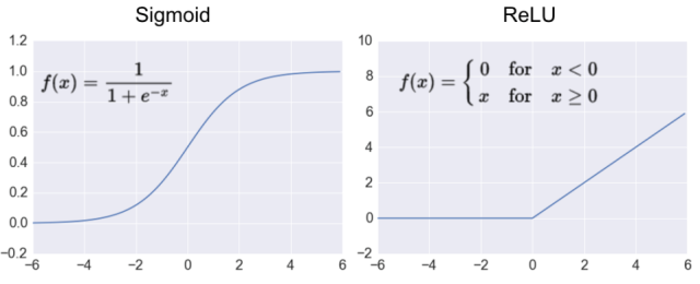 神经网络需要使用激活函数去除线性化,否则即便增加网络的深度也依旧还是线性映射,起不到多层的效果。与Softmax模型所使用的Sigmoid函数不同,卷积神经网络钟爱激活函数的是ReLU,它有利于反向传播阶段的计算,也能缓解过拟合。ReLU函数很简单,就是忽略小于0的输出,可以理解为像折纸那样对数据进行区分。注意在使用ReLU函数时,比较好的做法是用一个较小的正数来初始化偏置项,以避免神经元节点输出恒为0的问题。下图是Sigmoid和ReLU函数的对比。