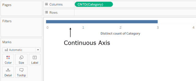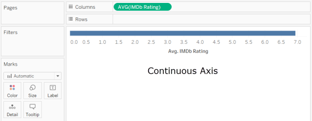 当您将字段从“度量”区域拖到“行”或“列”时,Tableau 将创建连续轴。