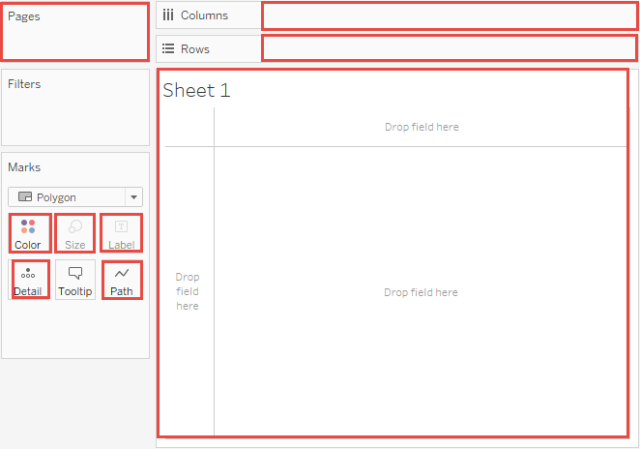 工作表包含功能区和卡,您可以向其中拖入数据字段来构建视图。