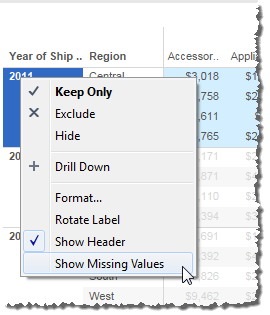现在,您具有分类数据的嵌套表(即“Sub-Category”(子类)维度嵌套在“Region”(区域)维度内)。
