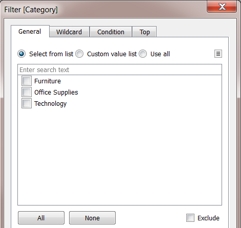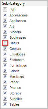 STEP 8: 在“筛选器 [Region]”对话框中,清除“Central”(中部)、“East”(东部)和“South”(南部)复选框,然后单击“确定”。