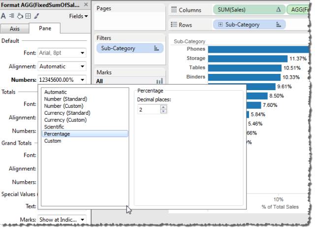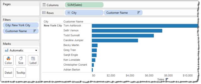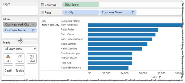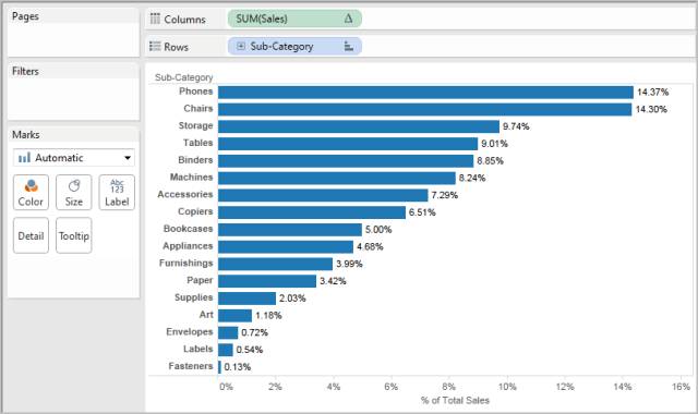 现在只需将“Sales”(销售额)拖到“标签”,然后设置标签格式以提高可读性。