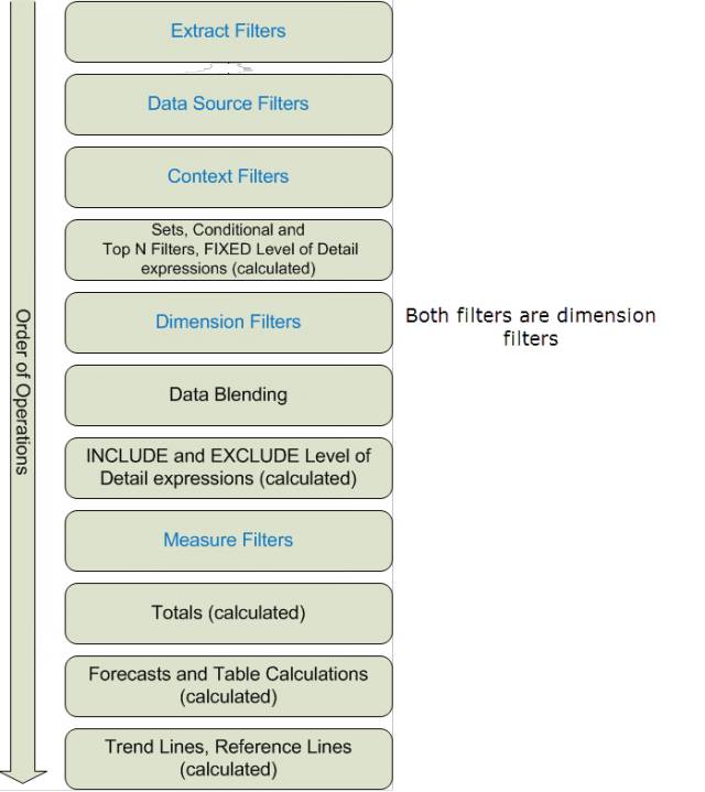 为何有一些字段维度和其他度量?添加筛选器将对我的视图产生什么影响?为何一些字段的背景颜色是蓝色,而另外一些字段的背景颜色是绿色?