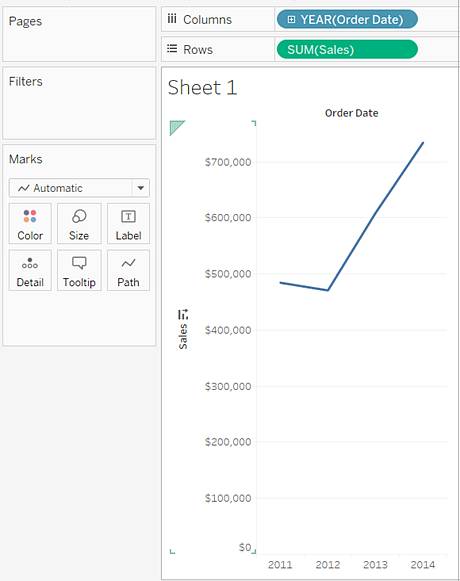 由于您添加了日期维度,因此 Tableau 会使用“线”作为标记类型。