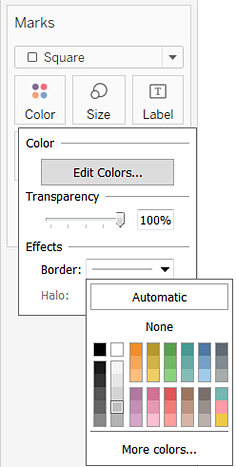 有关颜色选项的详细信息,请参见颜色属性(http://onlinehelp.tableau.com/current/pro/desktop/zh-cn/ viewparts_marks_markproperties _color.html)。