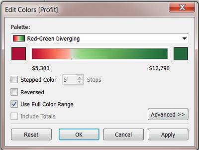 STEP 7:默认调色板为“橙色-蓝色发散”,其中“红色-绿色发散”调色板可能更适合于利润。若要更改调色板并使颜色更鲜明,请执行以下操作: