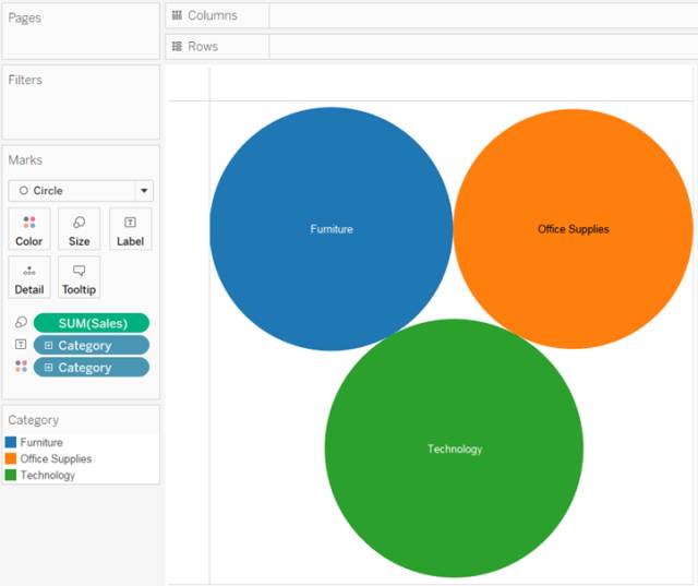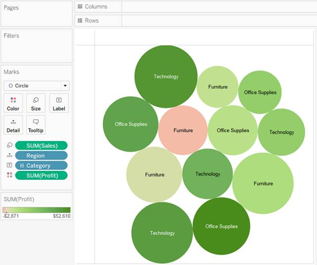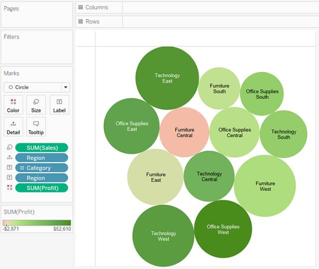 Tableau 会显示以下填充气泡图: