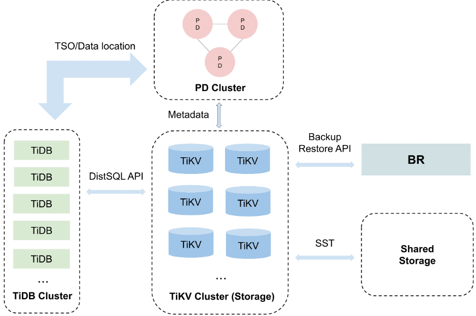 数据库作为基础设施,其安全性不言而明,因此数据安全备份和恢复功能是在严肃使用场景下的标配。TiDB 作为一款分布式数据库,目前可以满足超大集群的备份恢复的需求,经过测试,10T 数据的备份恢复速度可以达到 GB/s 级别。这得益于我们研发的分布式备份恢复工具 Backup&Restore That Scales(以下简称 BR)。