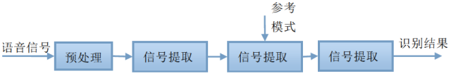 语音特征信号识别是语音识别研究领域中的一个重要方面,一般采用模式匹配的原理解决。语音识别的运算过程为:首先,待识别语音转化为电信号后输入识别系统,经过预处理后用数学方法提取语音特征信号,提取出的语音特征信号可以看成该段语音的模式。然后将该段语音模型同已知参考模式相比较,获得最佳匹配的参考模式为该段语音的识别结果。语音识别流程如图5所示。