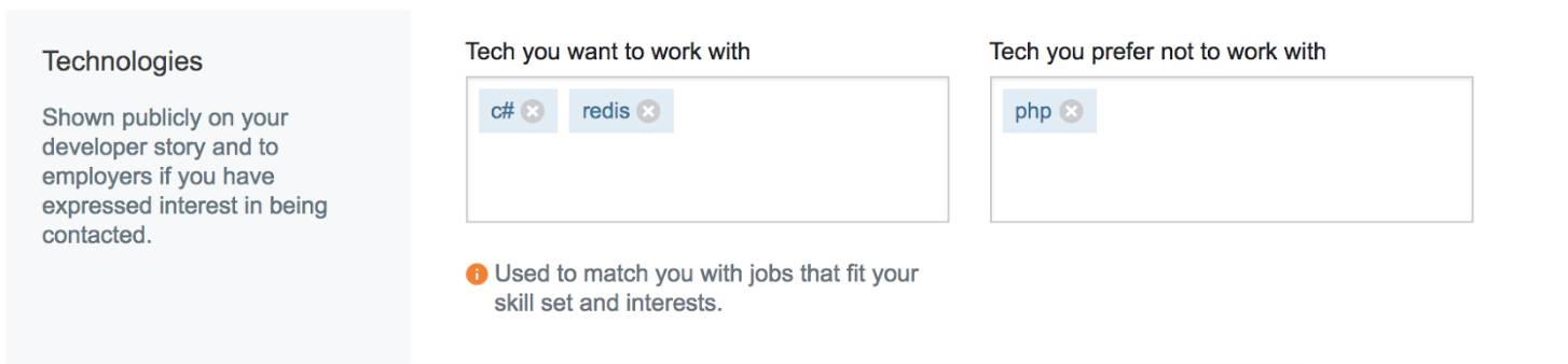 在你的Stack Overflow档案中,工作匹配偏好提供给我们有关你工作兴趣的线索
