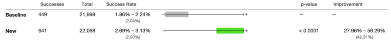 结果好很多了,更多的人点击了工作申请(获得了42%的提升)