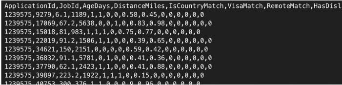 score = 0.2 * AgeDays + 1.42 * LogDistanceMiles + 3.08 * IndustryMatch…