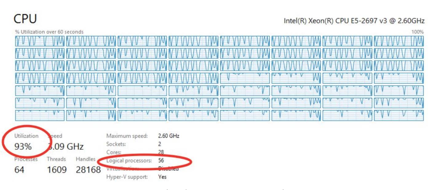 在56个逻辑处理器的基础上运行遗传算法