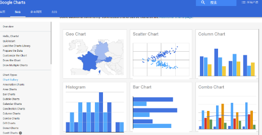 Google Charts是一个免费的开源js库,使用起来非常简单,只需要在script标签中将src指向https://www.gstatic.com/charts/loader.js然后即可开始绘制。它支持HTML5/SVG,可以跨平台部署,并特意为兼容旧版本的IE采用了vml。