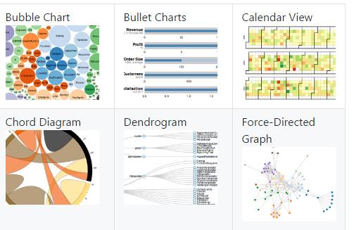 D3(Data Driven Documents)是支持SVG渲染的另一种JavaScript库。但是D3能够提供大量线性图和条形图之外的复杂图表样式,例如Voronoi图、树形图、圆形集群和单词云等。D3.js是数据驱动文件(Data-Driven Documents)的缩写,他通过使用HTML\CSS和SVG来渲染精彩的图表和分析图。D3对网页标准的强调足以满足在所有主流浏览器上使用的可能性,使你免于被其他类型架构所捆绑的苦恼,它可以将视觉效果很棒的组件和数据驱动方法结合在一起。