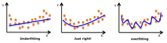 1)虽然存在通过高次多项式得到较低的错误的趋势,但这可能会导致过拟合。需要经常画出关系图来查看拟合情况,并确保拟合曲线正确体现了问题的本质。下面是一个图例,可以帮助理解: