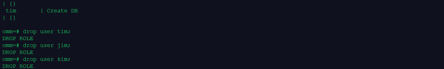 omm=# CREATE USER dim CREATEDB PASSWORD 'abcd@789';