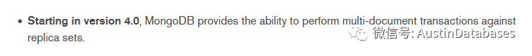 实际上事务中的原子性,完整性,可持久性,一致性, ACID 在MONGODB4.0 是存在的,这里MONGODB 的事务完成,提到了复制集合,并且是标注粗体的。