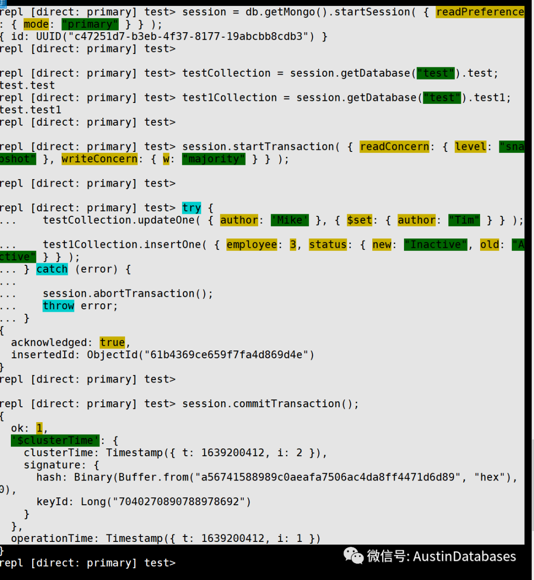 repl [direct: primary] test> session.commitTransaction();